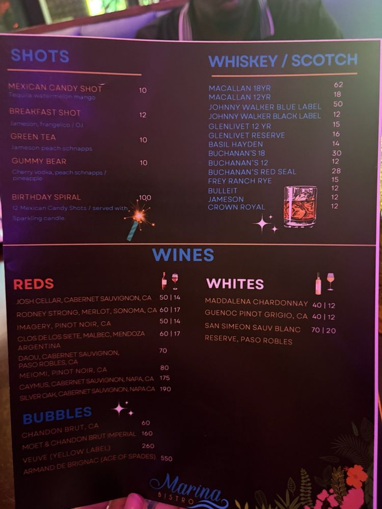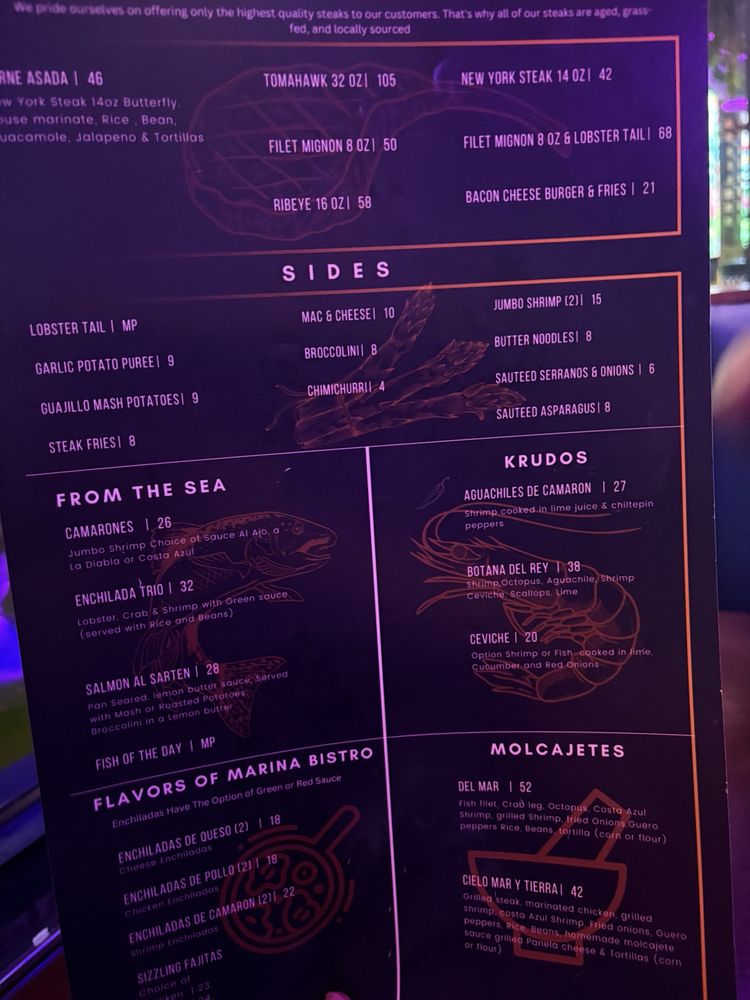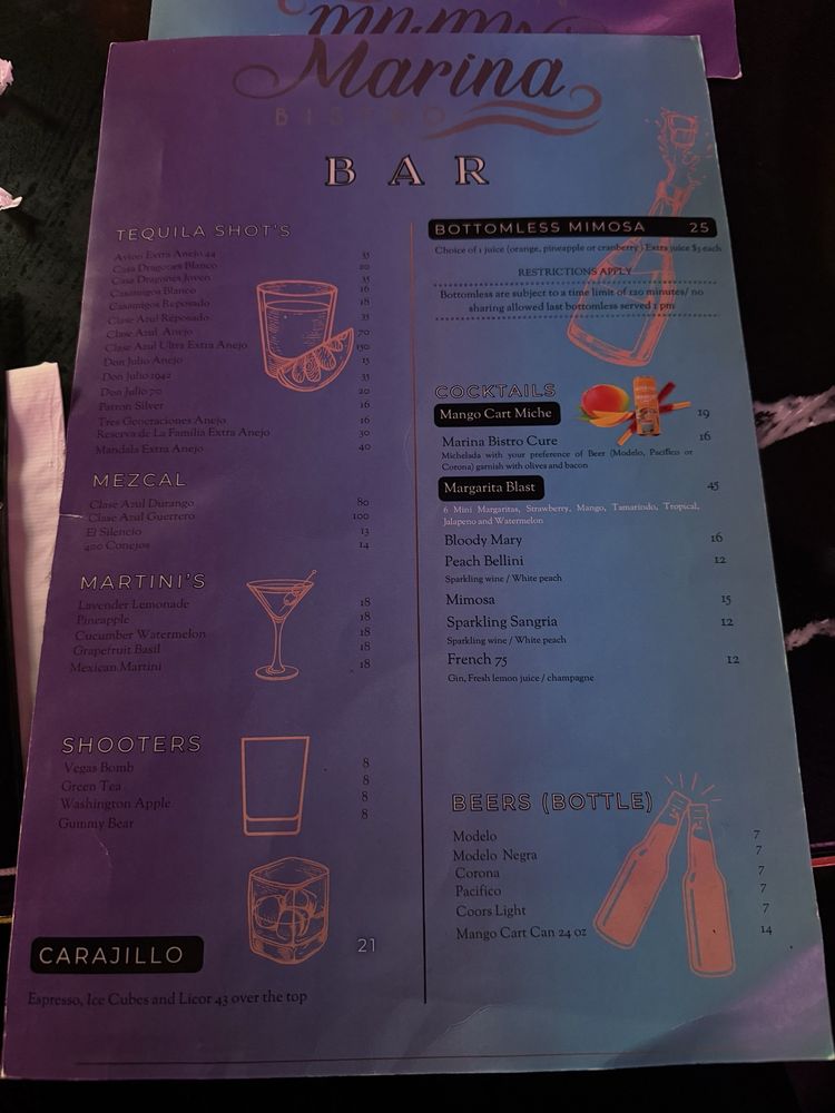 Welcome to Marina Bistro, an exciting fusion of steakhouses, Mexican cuisine, and seafood, nestled at 4760 W Sahara Ave in Las Vegas. This vibrant restaurant delivers a feast not just for the palate but also for the senses. The lively ambiance, complete with a DJ and sparkler-lit celebrations, sets the stage for a memorable dining experience.